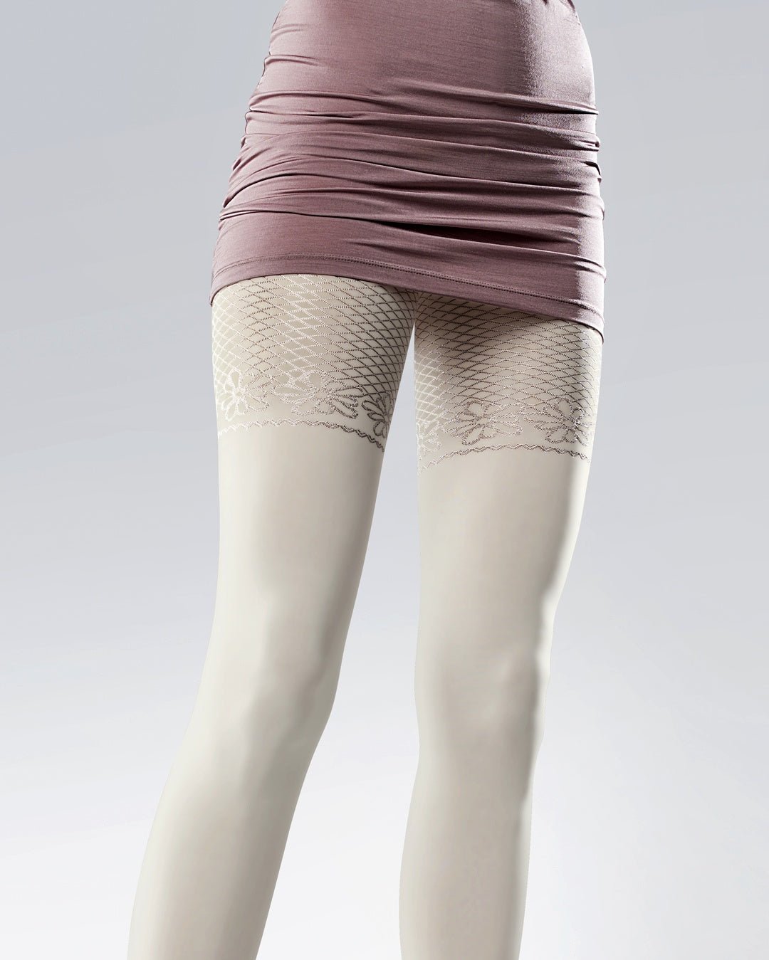 Kryjące grube rajstopy wzorzyste mikrofibra 3D 50 DEN Class Ecru